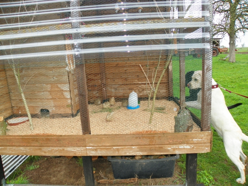 Sie leben im unteren Bereich der Voliere und ich hoffe auf das eine oder andere leckere und gesunde Wachtelei. Unser Alfons, der bisher immer die Wacheteln in der Nachbarschaft mit großem Interesse beobachtet hat, hat sie nun frei Haus und muss deswegen nicht mehr über die Straße laufen.